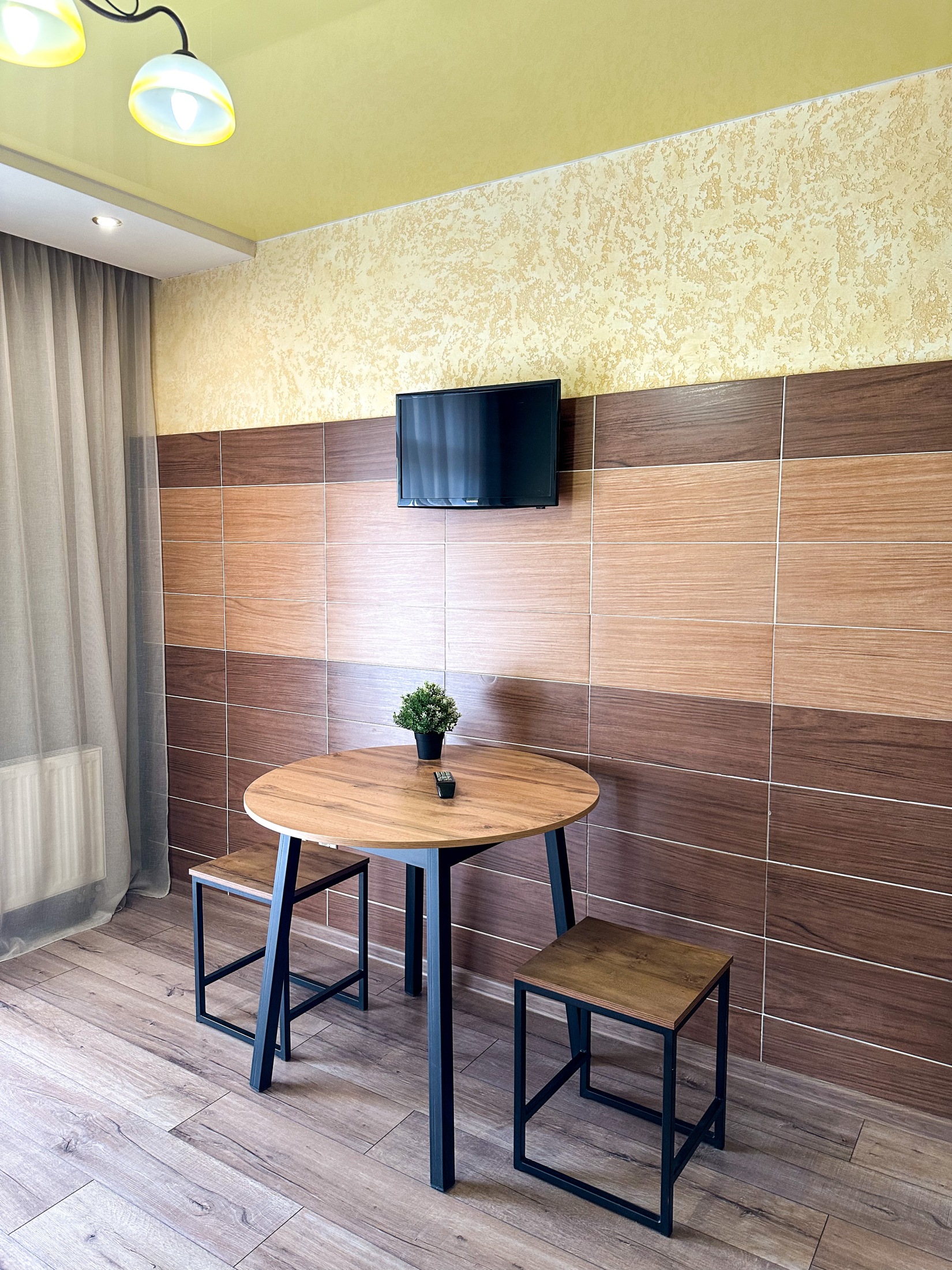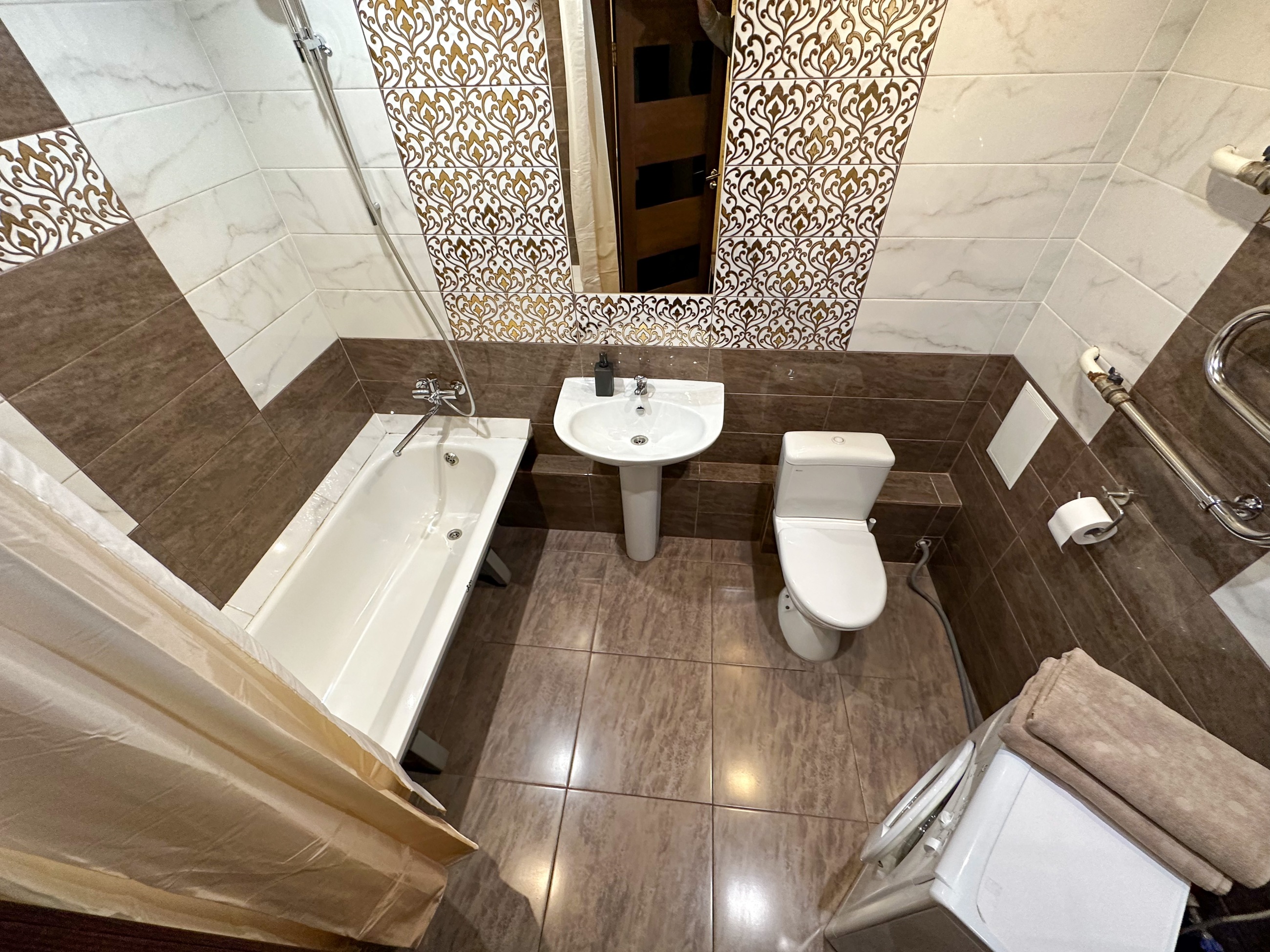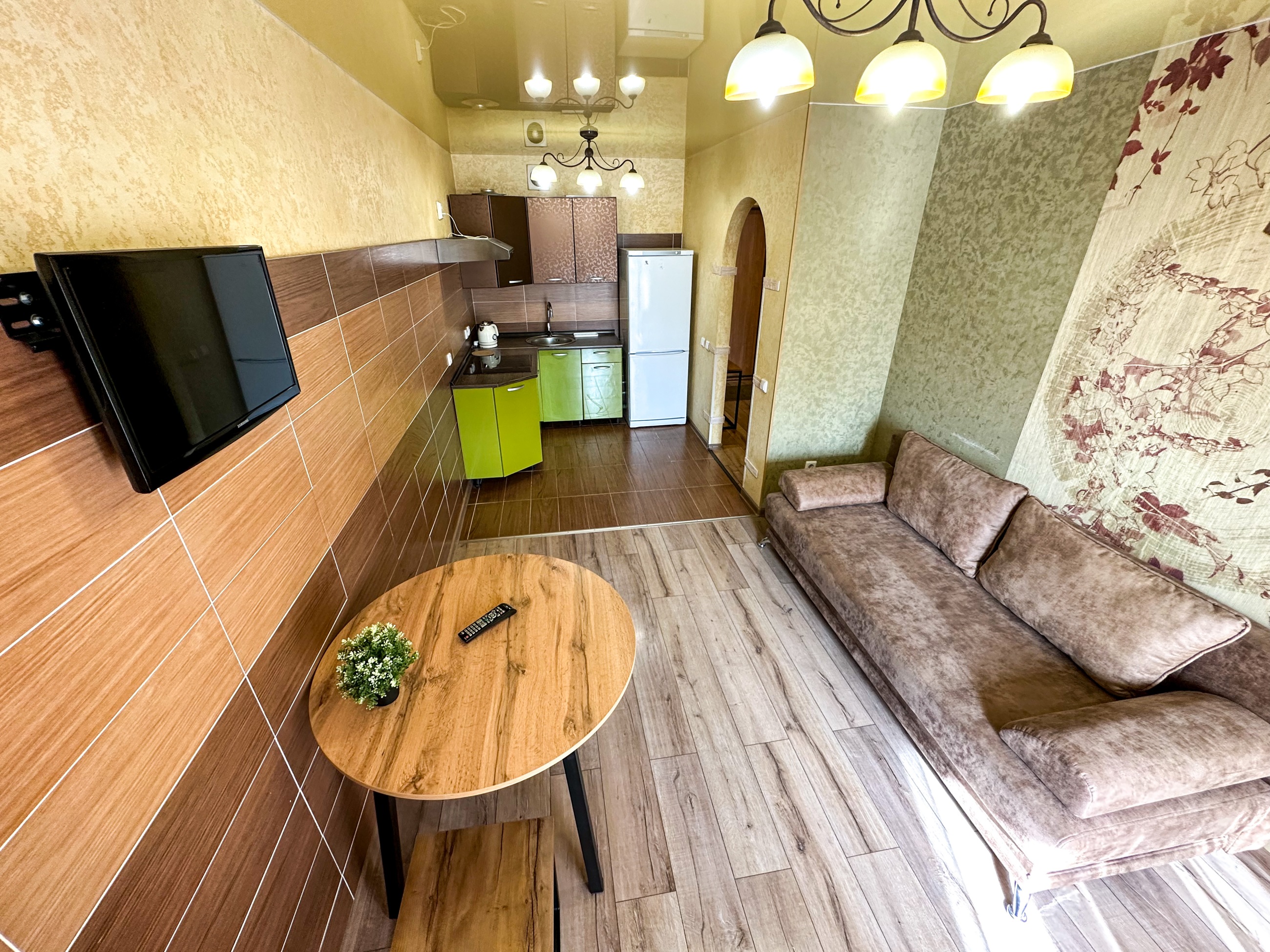 Квартира располагает 1 спальней и 1 ванной комнатой с ванной, душем и бесплатными туалетно-косметическими принадлежностями. В числе удобств два жк телевизора.